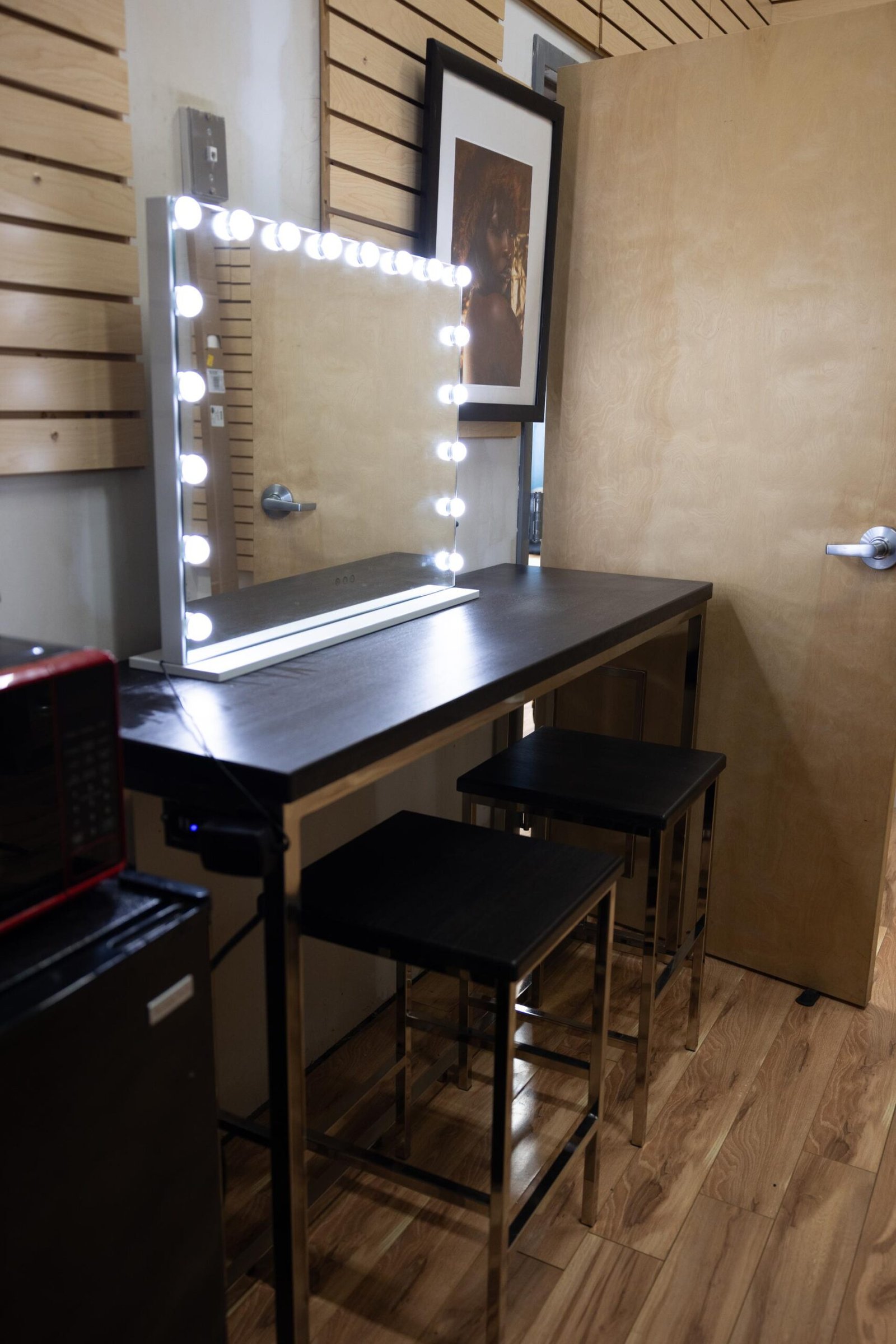 - Makeup table located in the back of the studio